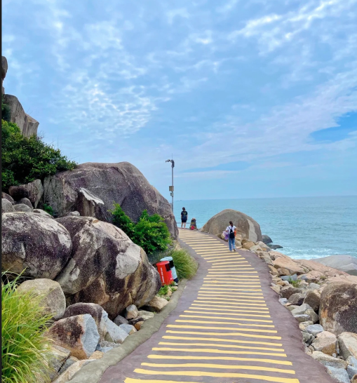 一起去海边散散步,感受海风拂过面颊、吹动发丝,听着一层层海浪欢动拍打海岸的声音